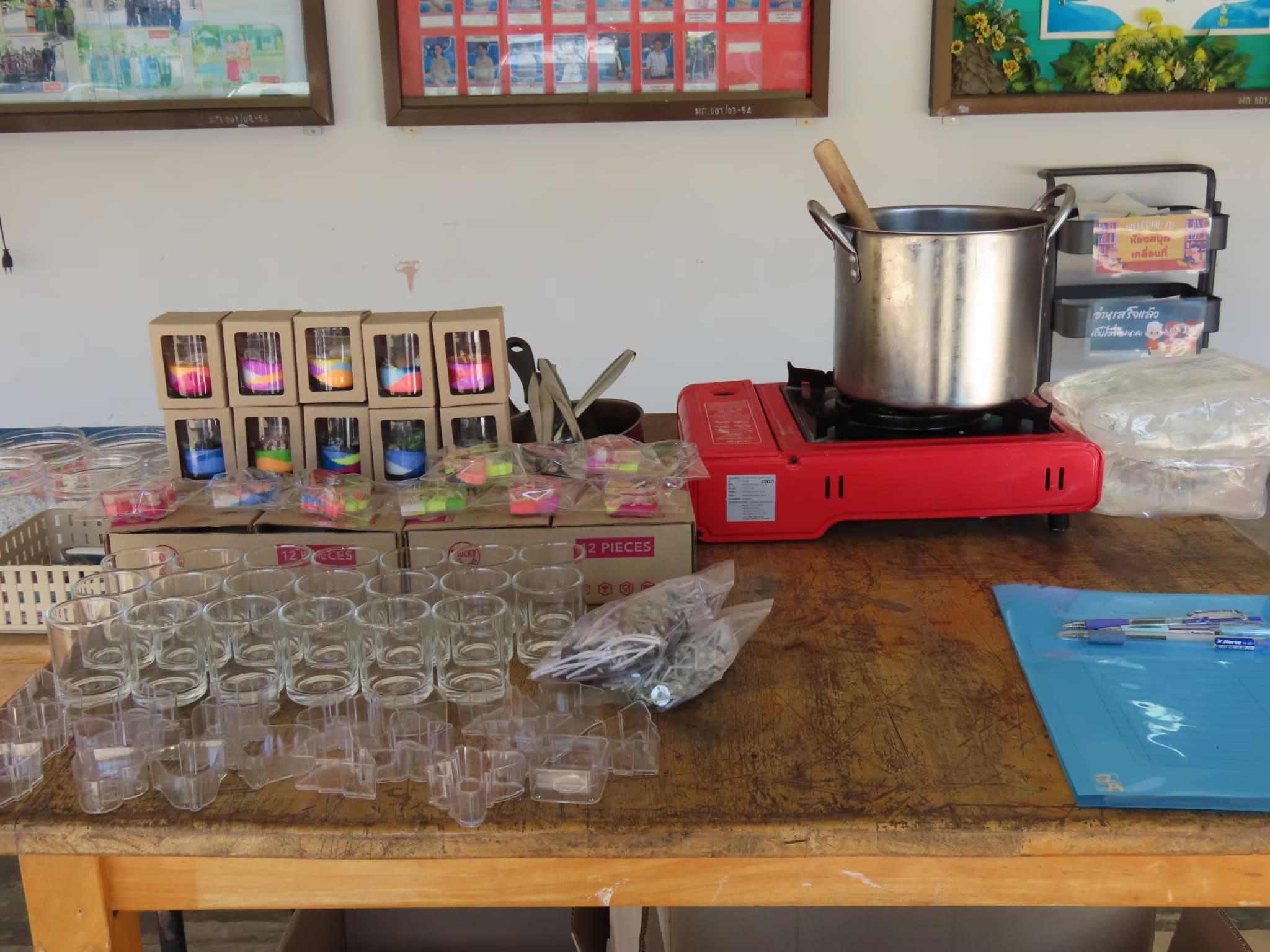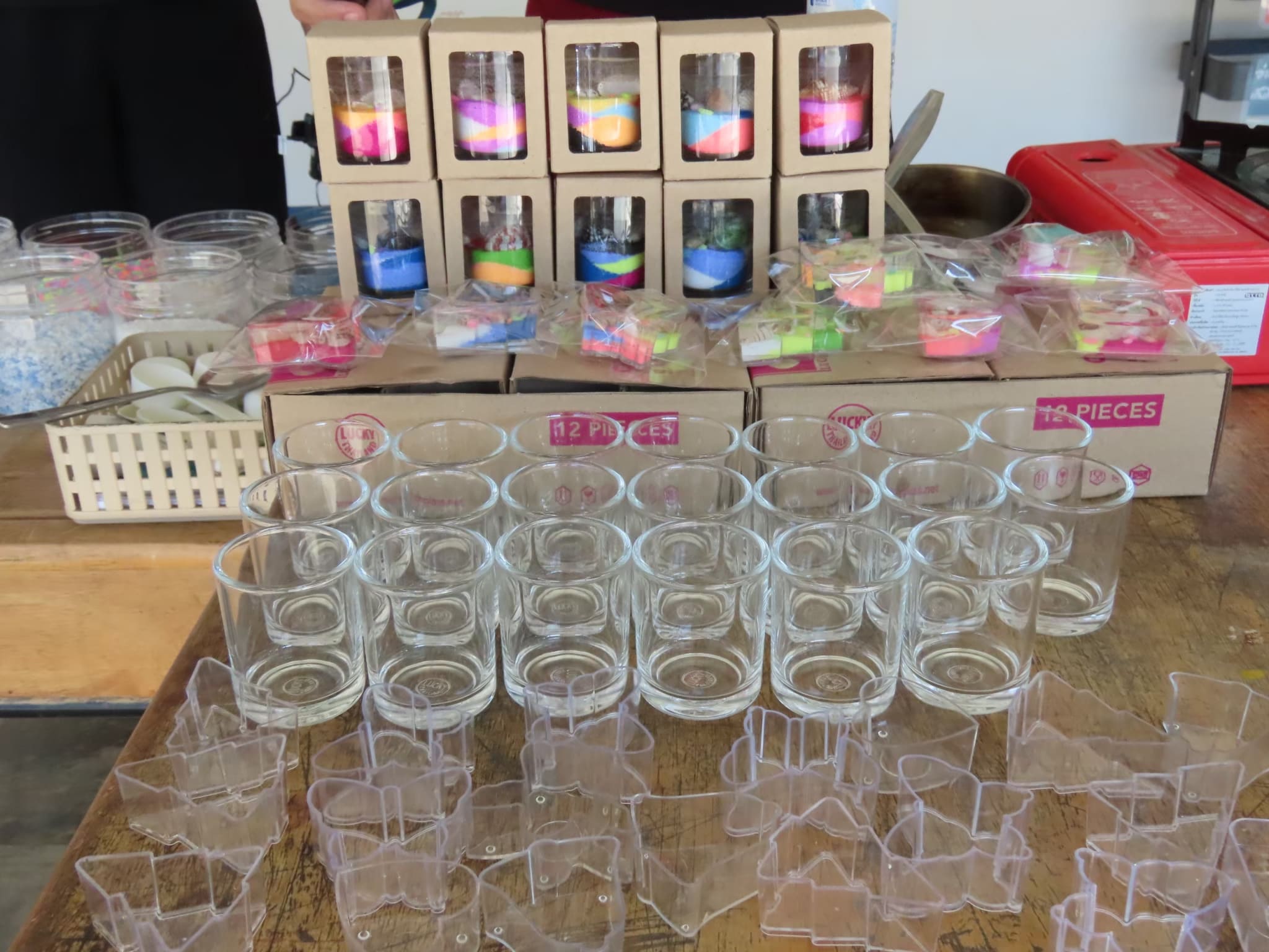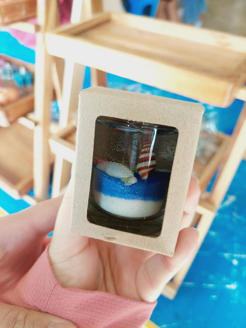 งานประดิษฐ์สุดสร้างสรรค์ ที่ใช้เจลใสเป็นสารตั้งต้น ละลายด้วยไฟอ่อน เติมสี น้ำหอม และตกแต่งด้วยของตกแต่งที่ไม่ติดไฟ เช่น ทรายสี เปลือกหอย หรือของจิ๋วต่างๆ