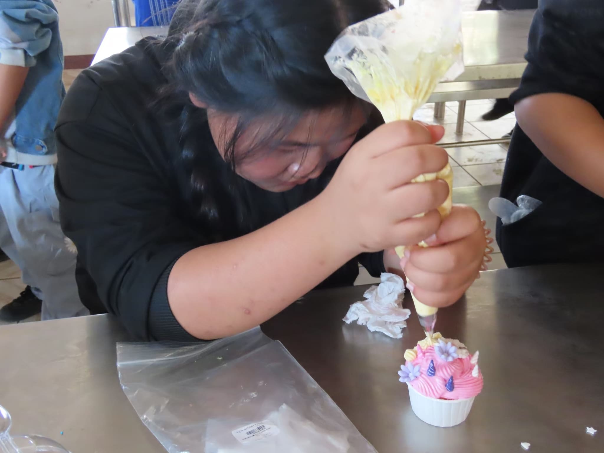 4. ตกแต่งด้วยครีม ไอซิ่ง หรือของตกแต่งอื่นๆ เช่น ผลไม้ ช็อกโกแลต